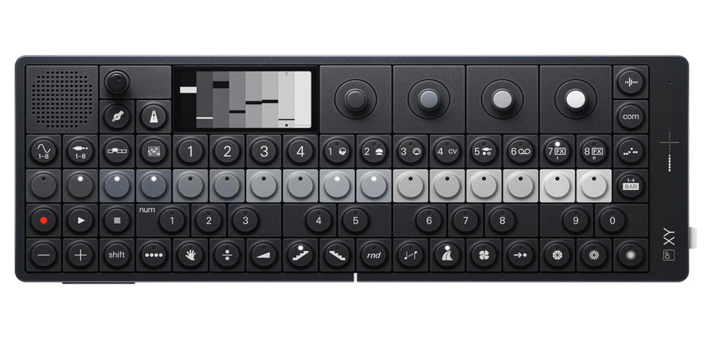 the right side of OP–XY features an advanced i/o system, made to lodge and connect almost anything. use the main output to connect amps, speakers or headphones. the 4-in-1 multi-out jack can pair pedals, synths, drum machines, even eurorack systems, and much more. sample and monitor anything—your voice, dirty stabs, a guitar—with audio-in or the built-in mic. midi-in and midi over usb type-c offers both host and device modes; use it as a ‘control hub’ for keyboards, drum pads, or cut the cables with bluetooth le for low-latency, wireless communication.